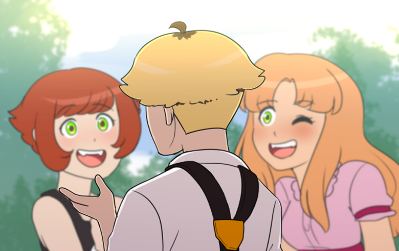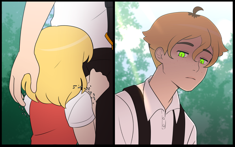 “Sorry for being a bully,” Isaac says, trying to comfort her. “How about I get us a treat! Would that help you feel better?” Daine finally releases his leg. She slowly nods, looking toward the ground. “Okay,” Isaac smiles. “I’ll be right back.”