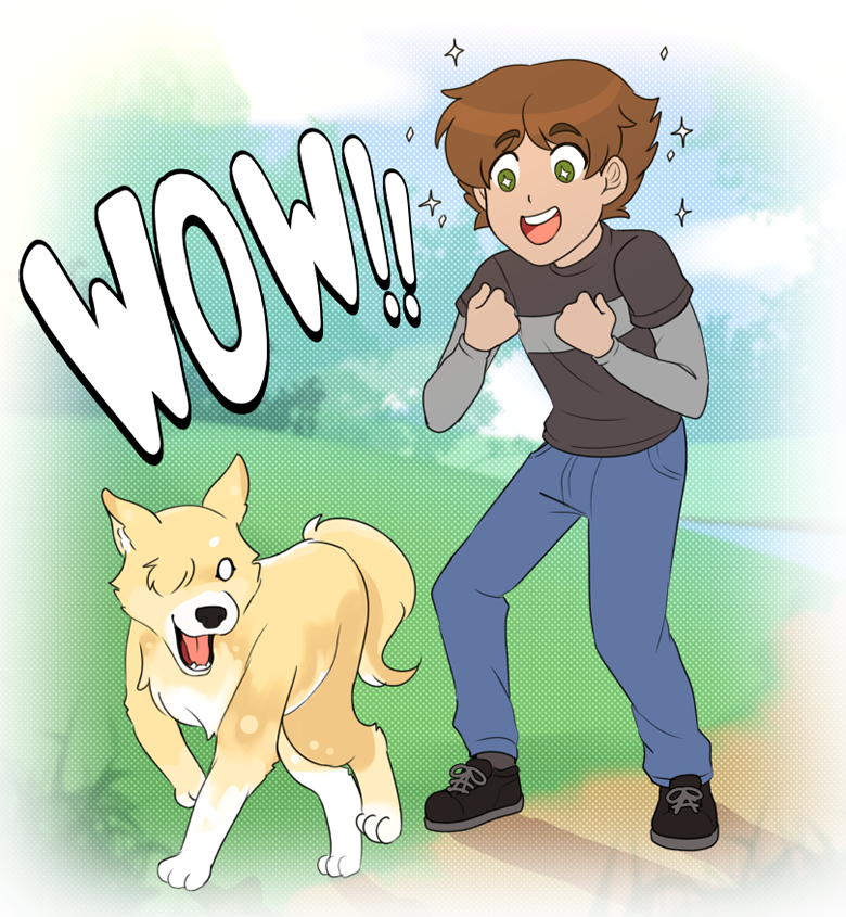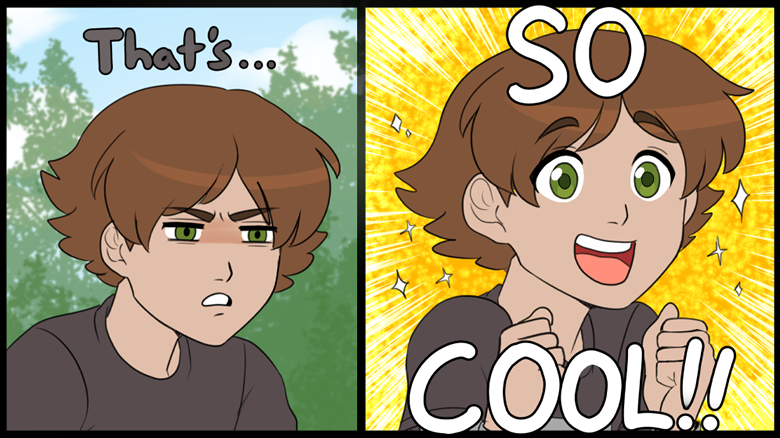 “HUH!?” this kind of reaction was not at all what the girl was expecting. The boy’s entire demeanor has changed. He looks at her with wide eyes, a giant grin shining brightly on his face.