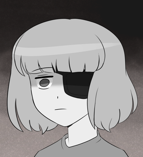 The girl stops responding. She won’t look at the boy, hopeful that he will leave her alone. He continues to squint at her, trying to understand. He notices the eyepatch on her eye, and his curiosity of the girl grows.