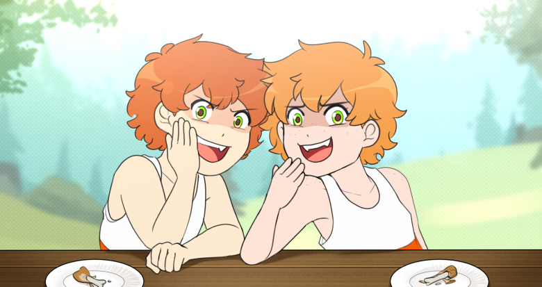 She recognizes them, for how could she not? These two kids had a bit of a reputation in the pack. They were troublemakers, and were always up to something. It was the lycan twins, Kane and Elaine. The two are sitting next to each other at their table, smirking in Daine’s direction.