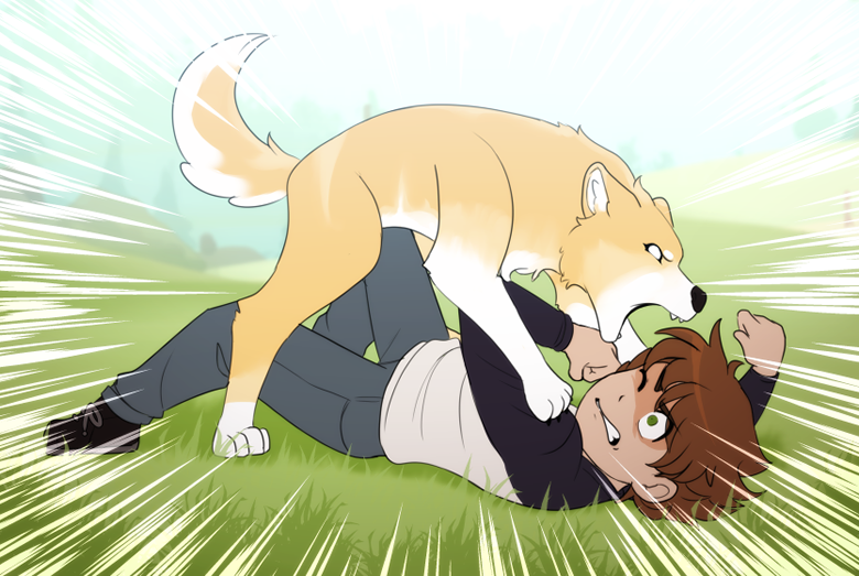 With these words, Elaine takes her true form and charges at Shadow. She pushes him to the ground, snapping at him with her sharp fangs. It’s all Shadow can do to hold her back. He fights back the best he can, thrashing about and hitting the wolf with his elbows and knees.