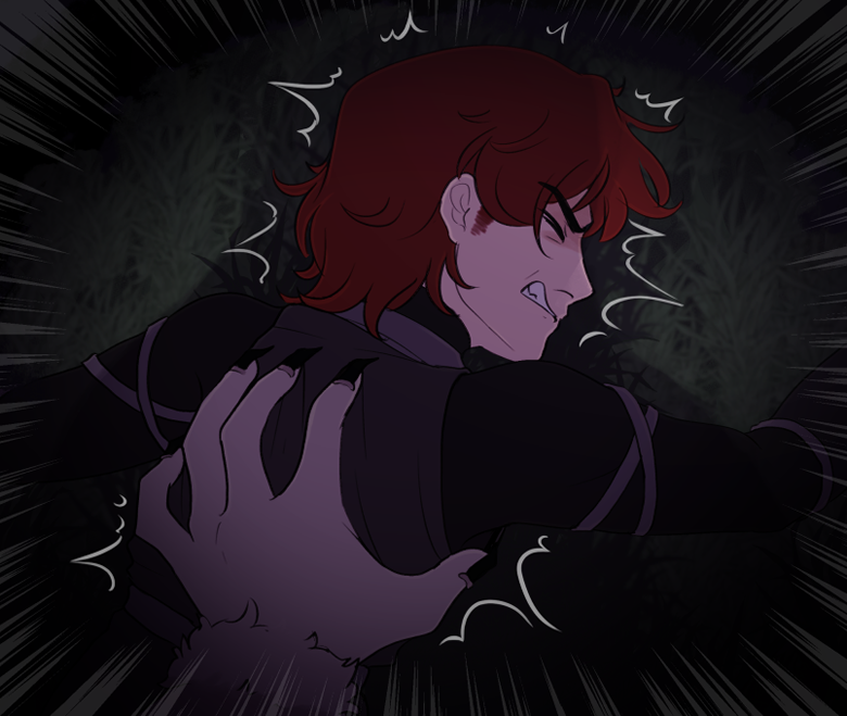 "...It's you..." he quietly says. His hushed words catch Vince's attention, and he looks into Leonard's terrified eyes. "...You're the berserk lycan..."