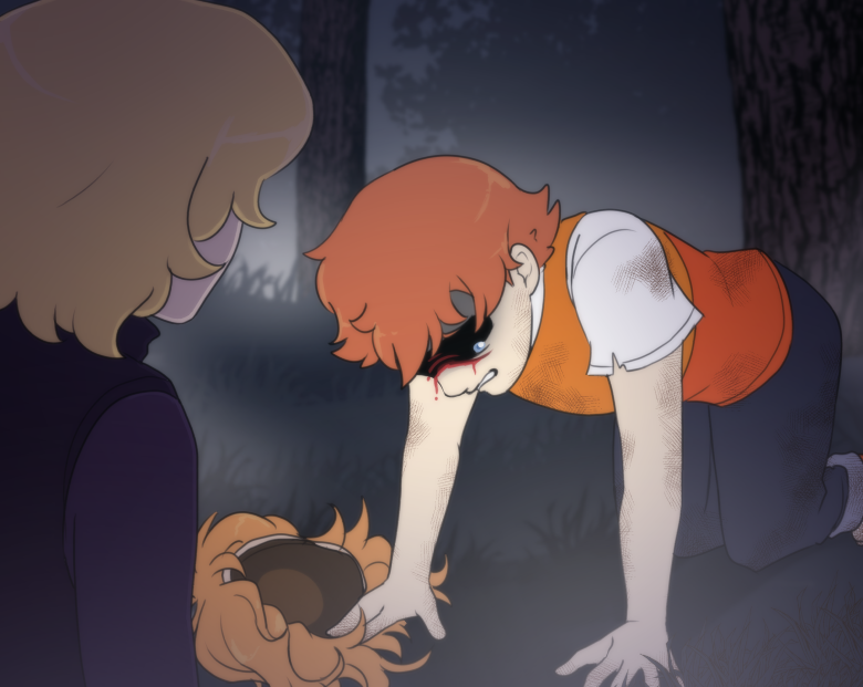 It wasn’t actually her hair, of course. It was a long, ginger wig. As it falls, it reveals the shorter, slightly darker hair hidden beneath it. The wig drops to the ground, and all has become clear. Realizing what’s just happened, the child gasps and desperately grabs the fallen hair. In a futile attempt to keep up the farce, they quickly place it back on their head. But it’s too late. Daine has seen the truth.