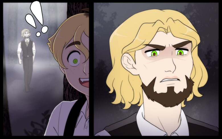 Kane gets up with a jolt. “I have to go!” he quietly whispers, quickly retrieving the wig. He was lucky with Daine, but he couldn’t afford to have another person discover his secret. He takes a few steps, but then turns around. He quickly bows his head, and whispers “Thank you…!” before retreating into the woods.